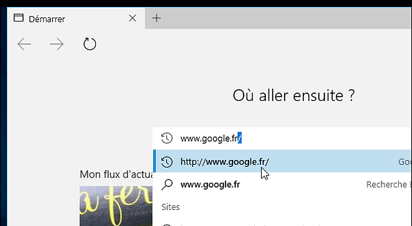 Dans un premier temps, et c'est là toute l'astuce, rendez-vous avec Edge sur le site www.google.fr, fr.yahoo.com ou un autre moteur de recherche. Nous prenons ceux-ci en exemple car d'autres alternatives comme DuckDuckGo ou Ixquick ne sont pas reconnus dans les paramètres.