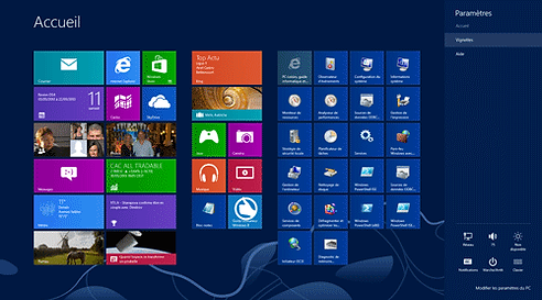 Sur l'écran d' accueil, faites apparaitre la barre des symboles pour accéder aux Paramètres. Cliquez sur Paramètres puis cliquez sur Vignettes.