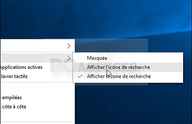 Une des nouveautés de Windows 10 est l'assistant personnel Cortana qui est intégré directement dans la barre des tâches. Cette barre de recherche est assez volumineuse. Vous pouvez facilement la transformer en une icône ou la supprimer entièrement et dans ce cas, elle sera tout de même accessible via le menu Démarrer.